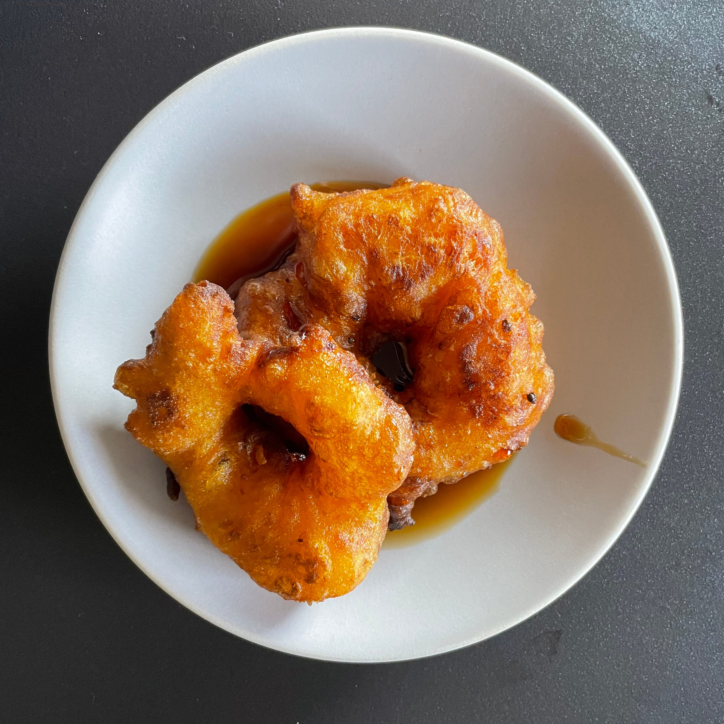 Warm picarones, round and toasted, and in their syrup well bathed 🎵